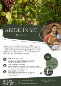 A Prayer and Fasting Conference where we go deeper in preparation for the Solemnity of Easter. Together, using the Gospel of John, we will explore what it truly means to remain in the Lord and how His love can fill our lives.